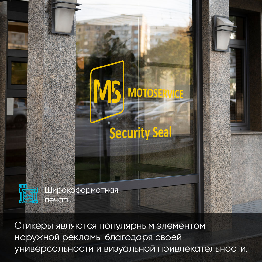 Стикеры – это яркий, эффективный и доступный способ привлечь внимание клиентов! Они легко размещаются в любых местах с высокой проходимостью, работают 24/7 и создают запоминающийся образ вашего бренда. Имеют огромный охват - их размещают на витринах, авто, упаковке, уличных поверхностях.